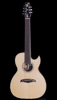 Indian Rosewood back and sides Engleman Spruce top w/ Abalone Rosette Wood bindings w/ Abalone trim Arched Ebony fingerboard, 24 frets / octave Ebony headcap and bridge